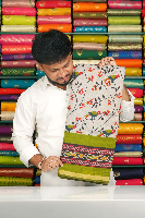Cotton And Silk Birds Print Ikkath Printed Border Ash With Mehandi Green Saree