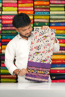 Cotton And Silk Birds Print Ikkath Printed Border Ash With Purple Saree