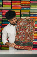 Cotton And Silk Crushed Floral Digital Print Chocolate Brown With Maroon Saree