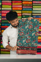 Cotton And Silk Crushed Floral Digital Print Rama Blue With Pink Saree