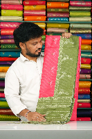 Cotton And Silk Doriya Weaving Flying Birds Design Bright Pink With Mehandi Green Saree