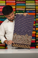 Cotton And Silk Doriya Weaving Kalamkari Border Blue With Black Saree