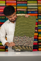Cotton And Silk Doriya Weaving Kalamkari Border Light Green With Dark Green Saree
