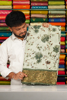 Cotton And Silk Floral Digital Print Light Green With Dark Green Saree