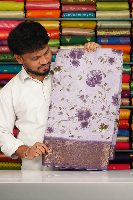 Cotton And Silk Floral Digital Print Light Lavender With Dark Lavender Saree
