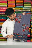 Cotton And Silk Floral Digital Print Zari Border Dark Blue With Peacock Blue Saree