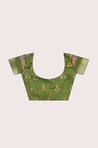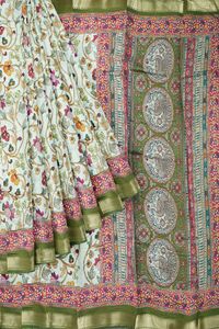 Cotton And Silk Floral Kalamkari Print Ash Mix Pista Green With Green Saree