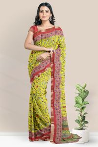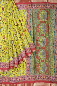 Cotton And Silk Floral Kalamkari Print Light Green With Maroon Saree