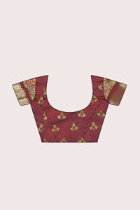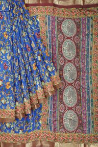 Cotton And Silk Floral Kalamkari Print Royal Blue With Snuff Saree