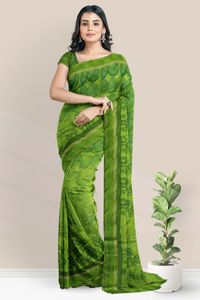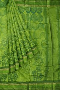 Cotton And Silk Floral Print Mehandi Green With Green Saree