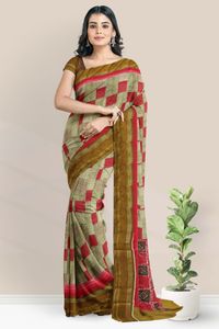 Cotton And Silk Lahariya Design Snuff With Honey Saree