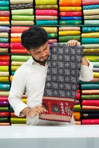 Cotton And Silk Mix Ajrakh Print Black With Dark Maroon Saree