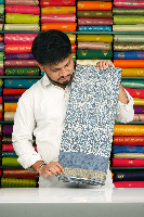 Cotton And Silk Mix Bathik Print Grayish Blue Saree