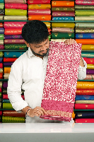 Cotton And Silk Mix Bathik Print Magenta Pink Saree