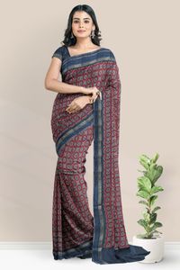 Cotton And Silk Printed Pattern Maroon With Greyish Blue Saree