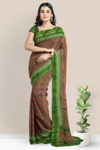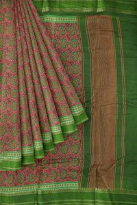 Cotton And Silk Printed Pattern Pink With Mehandi Green Saree