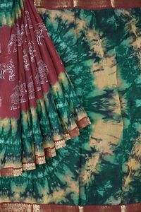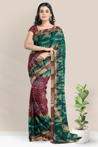 Cotton And Silk Shibori Print Dark Maroon Saree