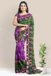 Cotton And Silk Shibori Print Magenta Pink Saree