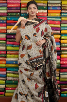Cotton Silk Leaf Design Grey And Orange With Black Saree