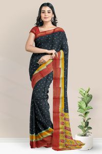 Cotton Silk Mix Bandhini Print Black With Green Mix And Maroon Saree