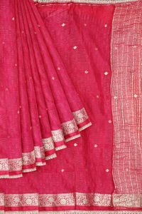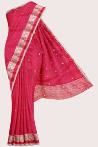 Crepe Georgette Doriya Lines Birds Butti Bright Pink Saree