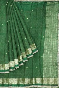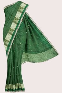Crepe Georgette Doriya Lines Birds Butti Dark Green Saree