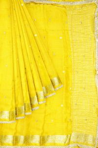 Crepe Georgette Doriya Lines Birds Butti Yellow Saree