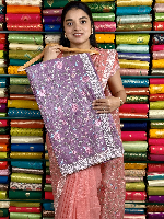 Crushed Chiffon Embroidery Work Lavender Saree