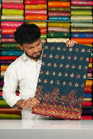 Crushed Maheswari Silk Floral Digital Print Peacock Green With Pink Saree