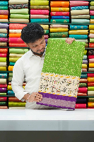 Crushed Silk Bandhini Print Green With Purple And Red Saree