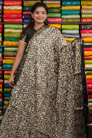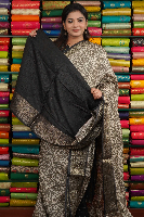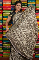 Crushed Silk Print With Zari Border Gray And Black Saree