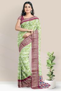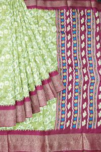 Crushed Silk Printed ParrotGren And MagenthaPink Saree