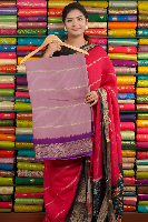 Dola Crepe Gold Zari Weaving Lines Mauve With Purple Saree