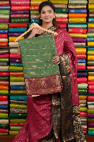 Dola Silk Gold Zari Lines Green With Wine Saree