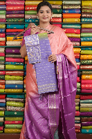 Dola Silk Gold Zari Lines Tie And Die Parrot Green With Lavender Saree