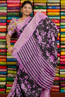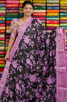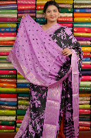 Dola Silk Zari Lines And Printed Black With Lavender Saree