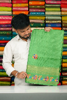 Dori Silk Kalamkari Peacock Digital Print Green Saree
