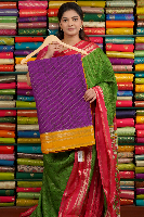 Doriya Silk Pen Kalamkari Print Purple With Yellow Saree