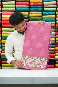 Eira Silk Floral Digital Print Flower Butti Light Magenta Pink Saree