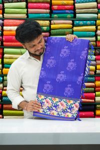 Eira Silk Floral Digital Print Flower Butti Royal Blue Saree