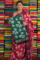 Emboose Dola Silk Floral Design Light And Dark Green Saree