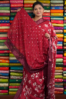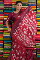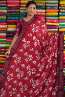 Emboose Dola Silk Floral Design Redsish Pink With Wine Saree