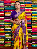 Emboose Jute Silk Floral Digital Print Yellow With Purple Saree