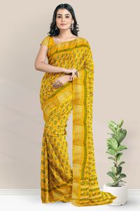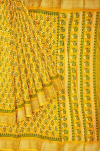 Emboose Silk Printed Pattern Mustard Yellow Saree