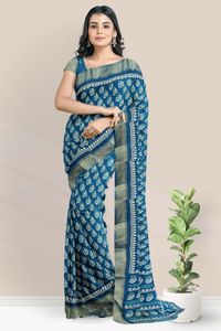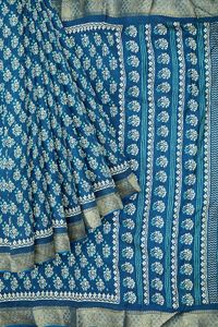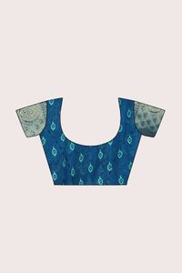 Emboose Silk Printed Pattern Peacock Blue Saree