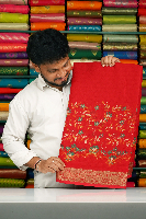 Emboss Groegette Printed Red Saree