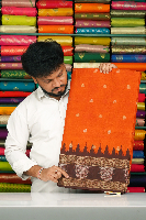 Fancy Chanderi Silk Silver And Gold Zari Peacock Butti Rust With Chocolate Saree