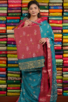 Fancy Crepe Print With Butti Onion Pink With Blue Saree