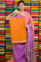 Fancy Crepe Silk Tie And Die Checks Lavender With Orange Saree