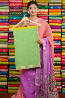 Fancy Crepe Silk Tie And Die Checks Yellow With Pista Green Saree